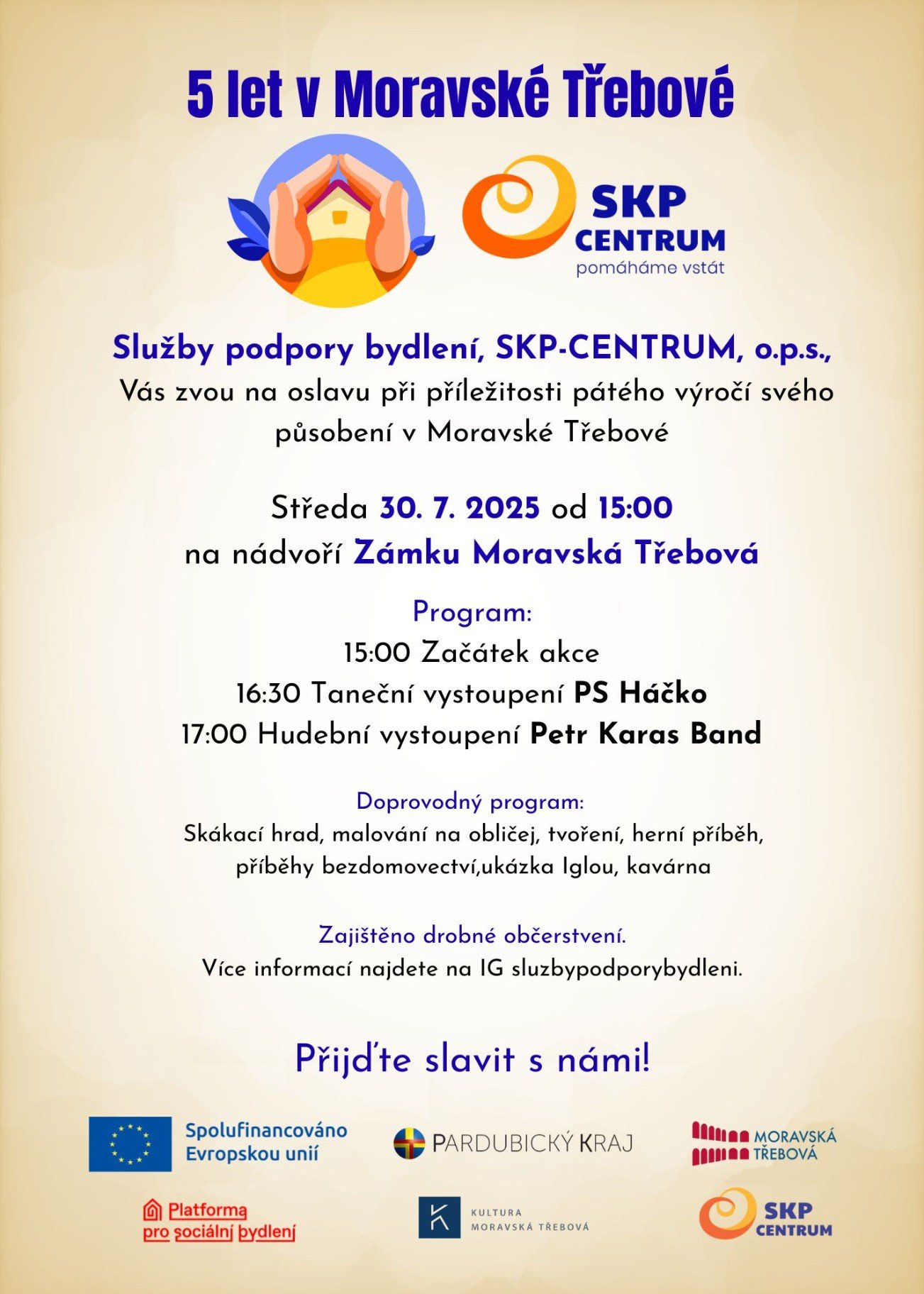 Srdečně Vás zveme na oslavu pátého výročí našeho působení v Moravské Třebové.