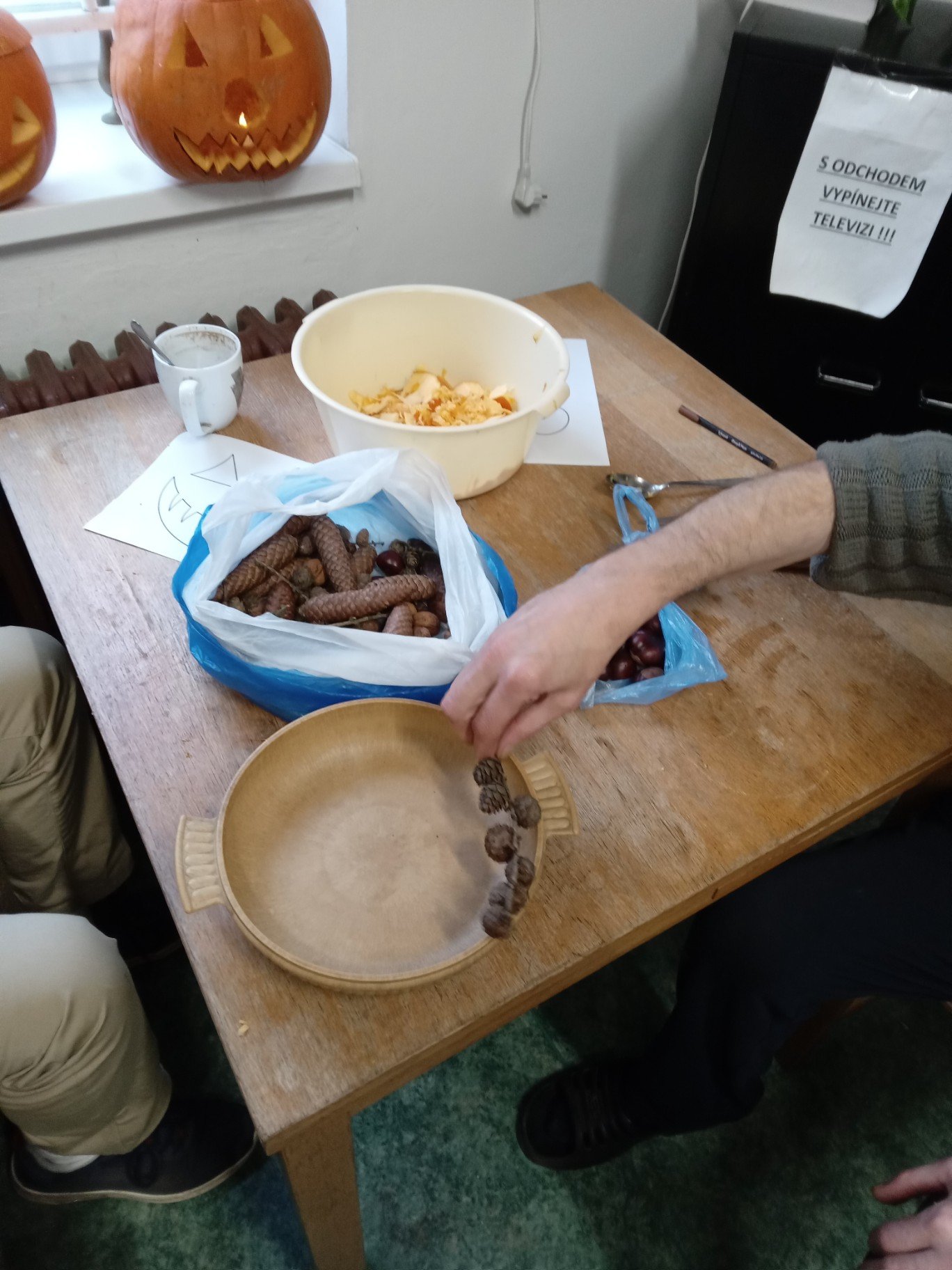Součástí odpoledne byla také výroba podzimní výzdoby z přírodních materiálů, jako jsou šišky, kaštany a oříšky. Během tvoření si uživatelé zpestřovali čas poslechem napínavých duchařských historek, které k tomuto období neodmyslitelně patří.