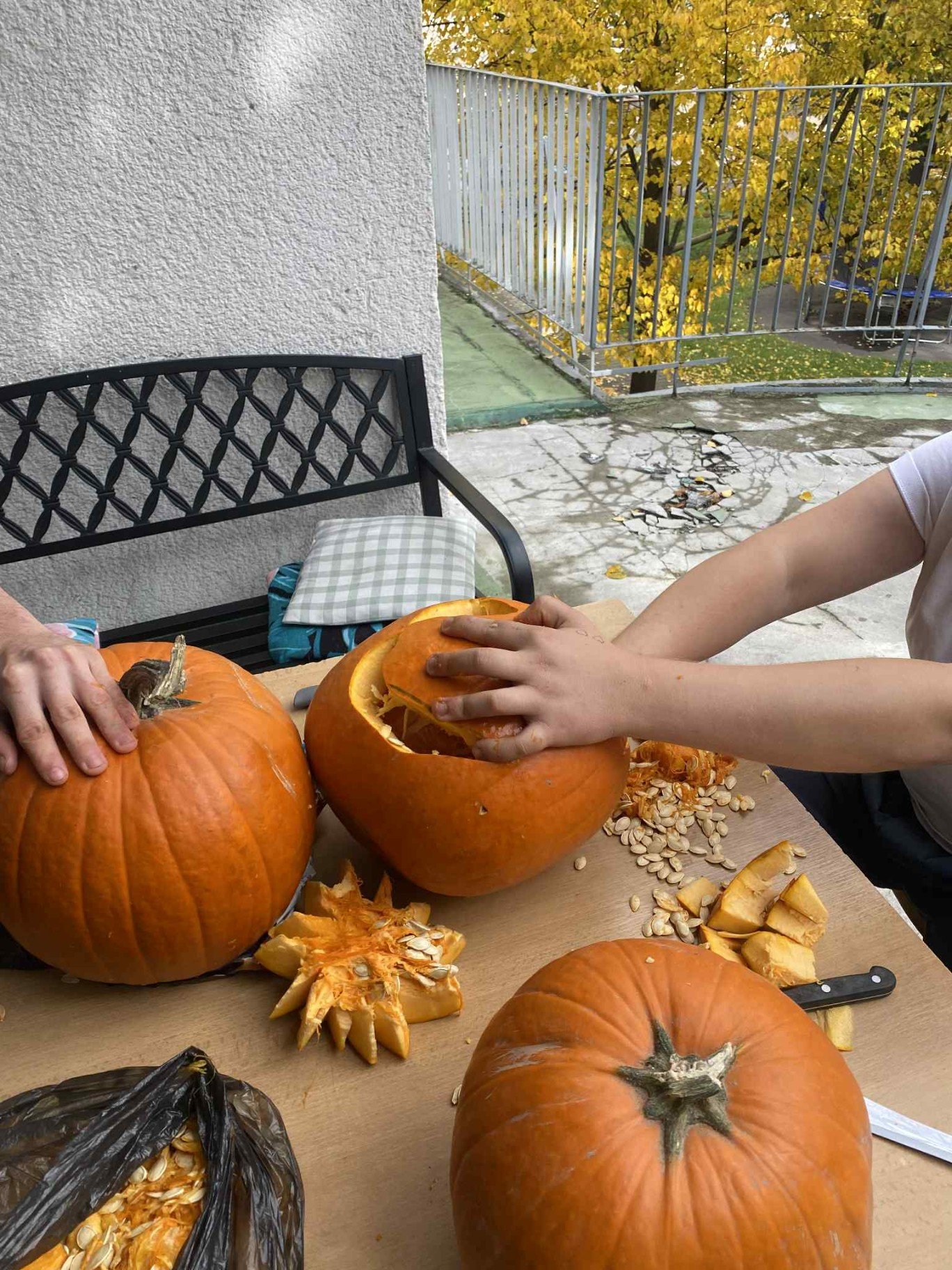 V Domě na půli cesty jsme si zpříjemnili podzimní dny společným dlabáním dýní s pracovnicí na pozici „Teta“. Klienti si vyzkoušeli vyřezávání různých motivů, vznikly krásné dýňové lucerny, které zdobí terasu DPC. „Nechyběla ani přátelská atmosféra a povídání si o různých tématech", říká pracovnice Stela.