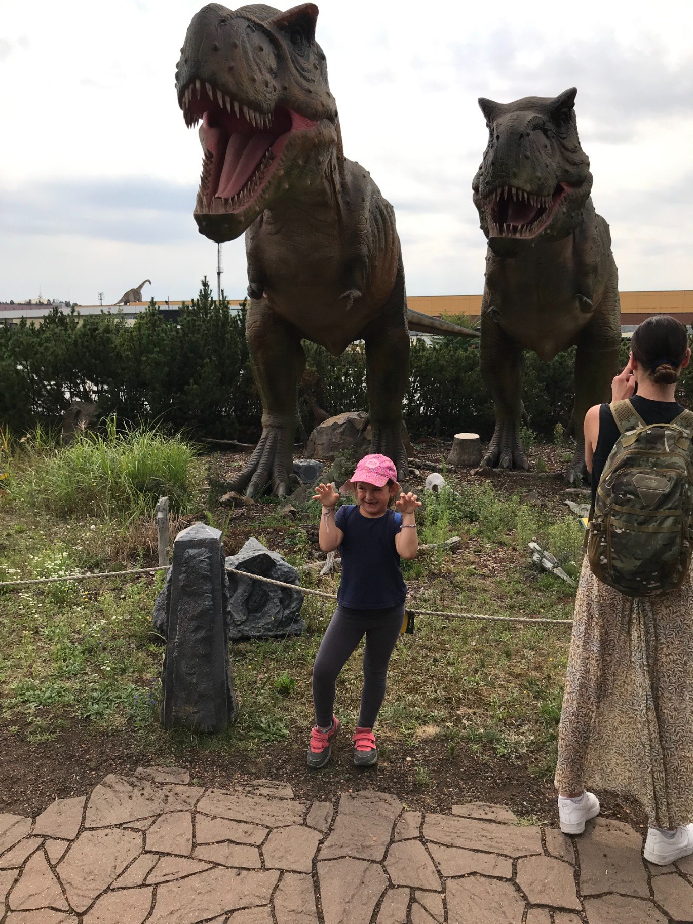 Jako poslední výlet letošních prázdnin byla návštěva DinoParku v OC Harfa v Praze. Hned na začátku děti dostaly kvíz, za jehož vyplnění dostaly na konci samolepku dinosaura a balíček gumových medvídků. Luštění otázek z kvízu nás provázelo po celou dobu prohlídky DinoParku a bylo zakončeno v kabinetu paleontologa, kde jsme mohli vidět i si vyzkoušet, jak tato práce probíhá. Celkově jsme si mohli prohlédnout několik modelů ozvučených statických dinosaurů z nichž jeden uměl i čůrat, což se setkalo s všeobecným zájmem u všech. V tomto DinoParku mají i robotické mládě, které se pohybovalo volně po prostoru. Dalším oblíbeným místem byla virtuální realita a také simulace druhohorního hurikánu. Některé děti se se štětečkem v ruce pustily do objevování koster dinosaurů na paleontologickém hřišti, což bylo velké pískoviště. Vše jsme zakončily ve 4D kině, kde jsme shlédli film Příběh vejce.