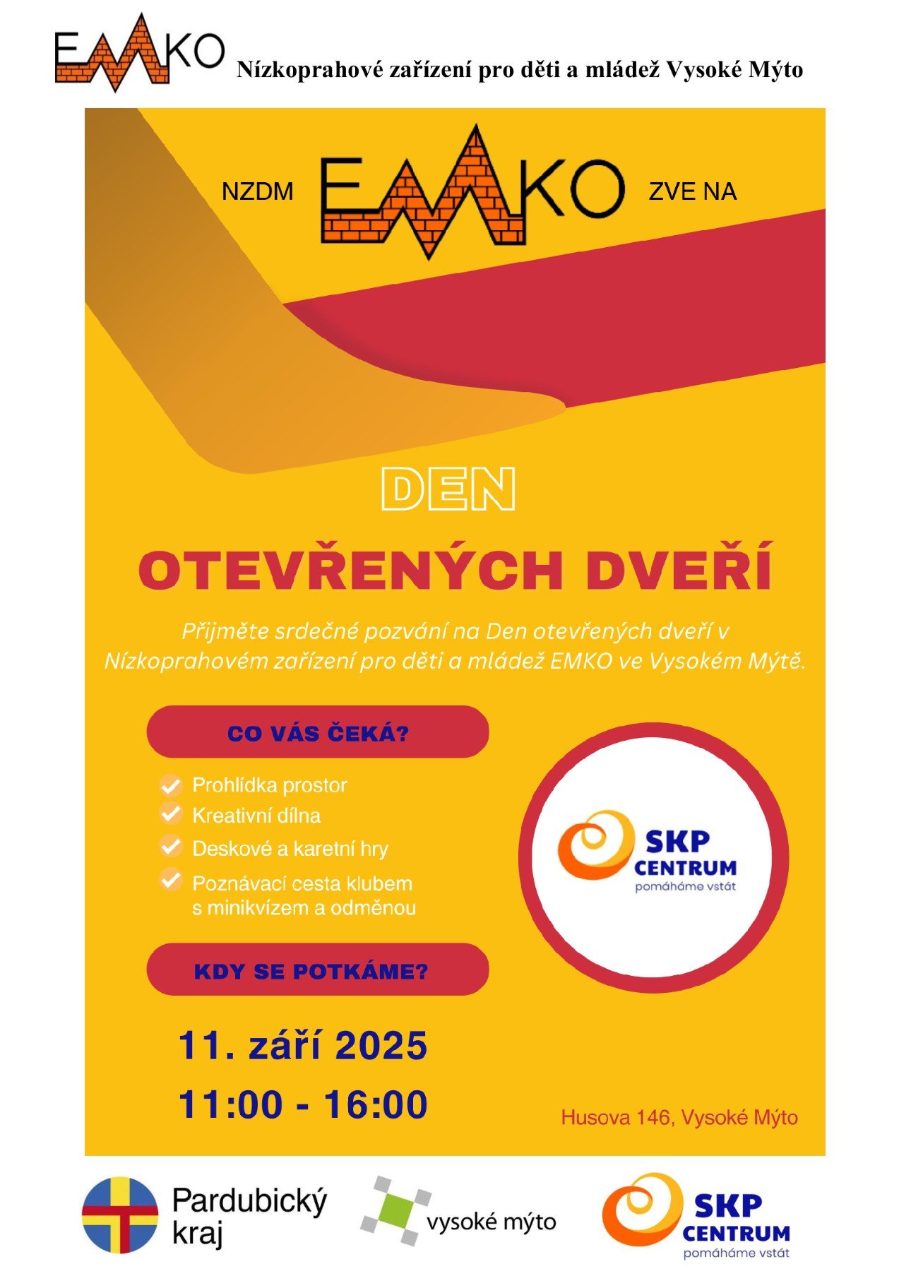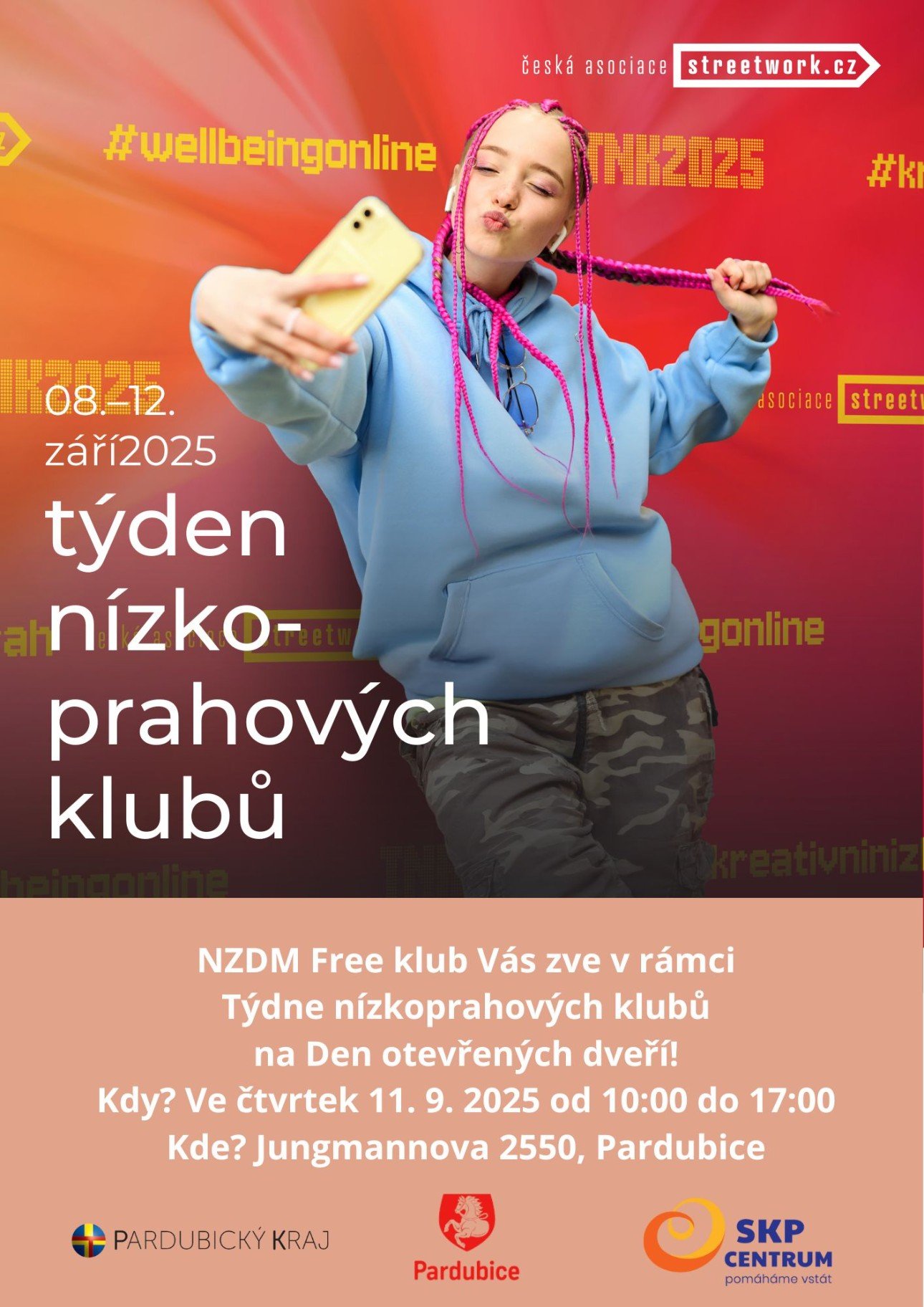 Pardubice, 18. 8. 2025 – Na začátku září se na celý týden otevřou nízkoprahová zařízení pro děti a mládež z celé republiky i pro širokou veřejnost. Česká asociace streetwork pořádá již podevatenácté kampaň Týden nízkoprahových klubů. Programy se budou věnovat tomu, jak se mají mladí bezpečně pohybovat v online prostoru, přiblíží i řadu způsobů, jak rozvíjet kreativitu mladých lidí. Naše kluby - Free klub v Pardubicích a EMKO ve Vysokém Mýtě Vás zvou k nahlédnutí do jejich fungování. V Pardubicích v NZDM Free klub se bude jednat o akci s názvem „Poznej Freečko“, ve Vysokém Mýtě v NZDM EMKO půjde o akci „Tvoř, relaxuj, buď!“ v rámci Týdne nízkoprahových klubů proběhnou také dny otevřených dveří pro veřejnost a to v obou klubech ve čtvrtek 11. 9. 2025.